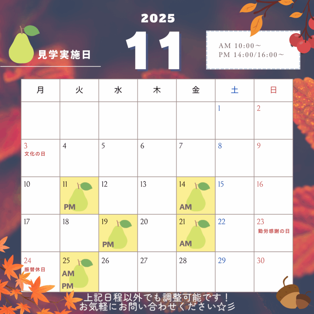◎カレンダーの開催日以外にも対応可能な場合がありますので、お気軽にご相談ください♪